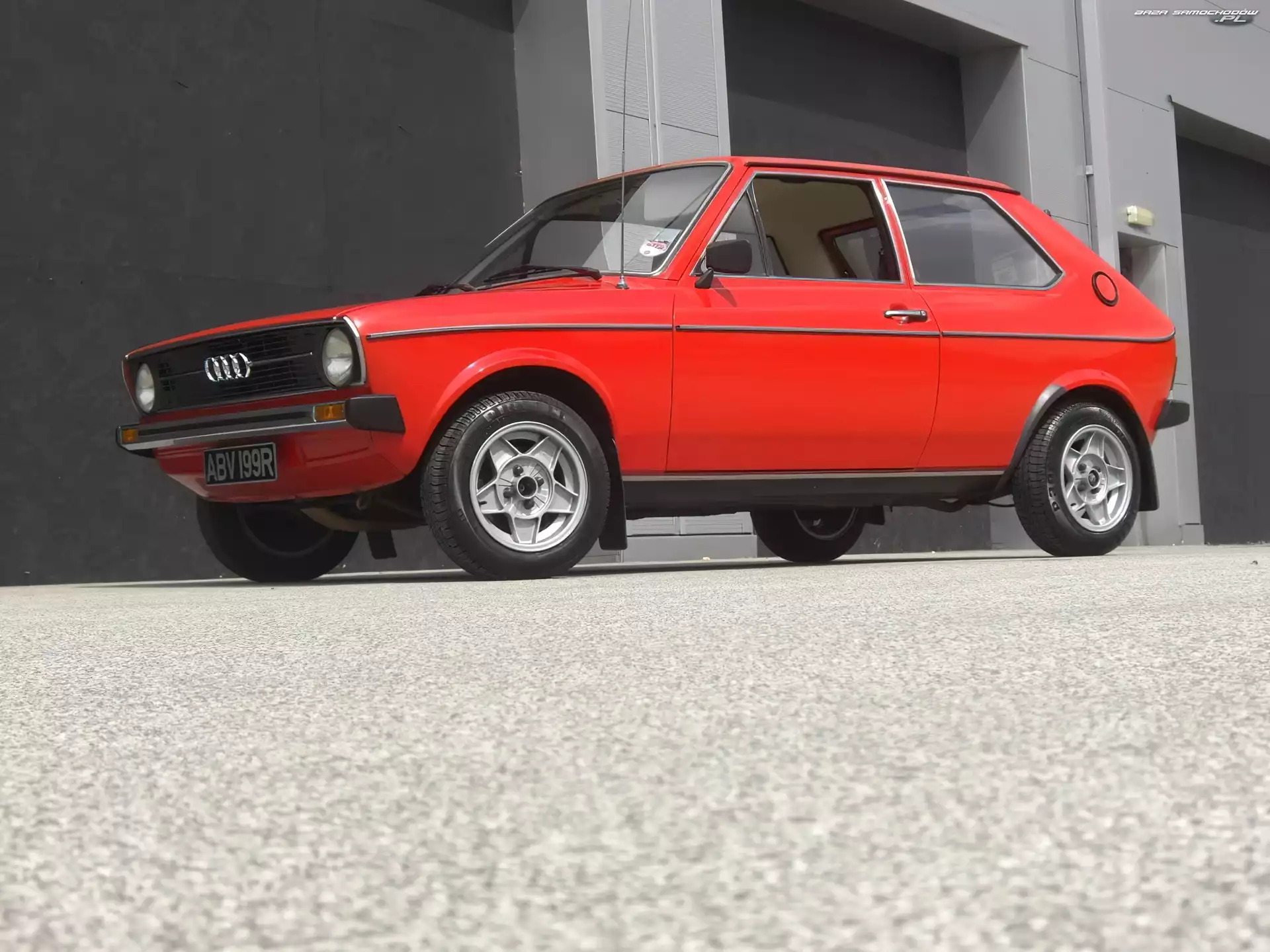Drzwi, Audi 50 Audi 50 Hatchback, Audi 50 Prezentacja, Audi 50, Wystawa Wystawa, Audi 50, Salon Audi 50, Chrom, Przód, Zderzak Reklama, Pomarańczowe, Audi 50